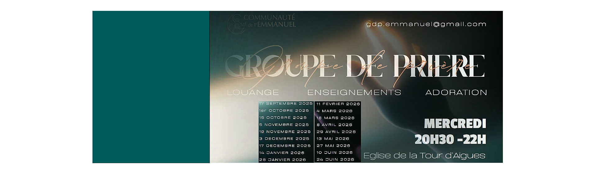 Actu à la une.. De nouveaux visages viennent rejoindre la Communauté des Sœurs de Saint Paul de Chartres. Bienvenue à Sœur Marie-Paul et à Sœur Anne Théophane ! Actu à la une. Lettre des Évêques de France à l’occasion du Jubilé et de l’anniversaire du Concile de Nicée Actus du diocèse Les dernières actualités du diocèse ! L’entrée dans l’année jubilaire avec notre Archevêque Actu à la une.... Le mercredi de 20h30 à 22h00 Eglise de La Tour d’Aigues Prochaine rencontre : 5 novembre 2025 Actu à la une.. De nouveaux visages viennent rejoindre la Communauté des Sœurs de Saint Paul de Chartres. Bienvenue à Sœur Marie-Paul et à Sœur Anne Théophane ! Actu à la une. Lettre des Évêques de France à l’occasion du Jubilé et de l’anniversaire du Concile de Nicée Actus du diocèse Les dernières actualités du diocèse ! L’entrée dans l’année jubilaire avec notre Archevêque
