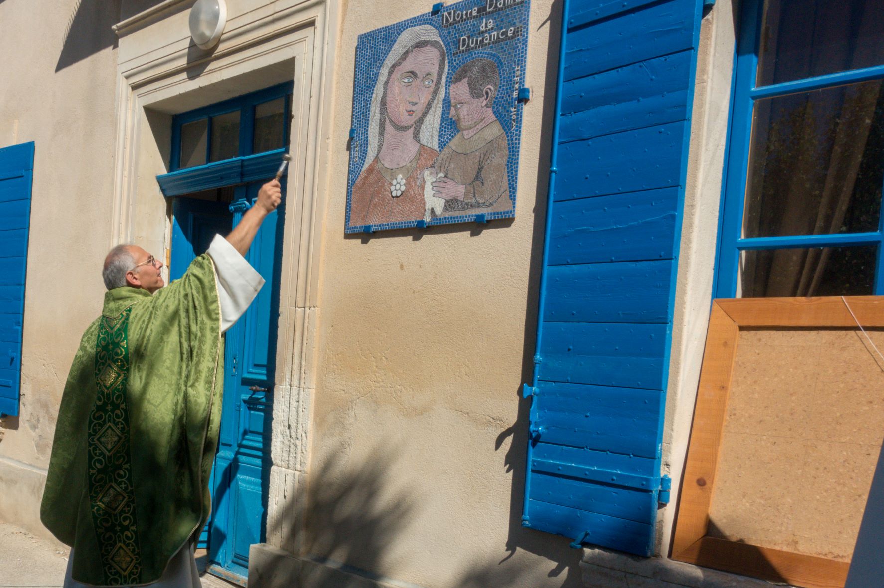Alors, en ce jour de découverte de la mosaïque, je prie, je prie pour que chaque personne du doyenné arrivant au local perçoive véritablement, grâce à cette mosaïque de Notre Dame de Durance, que le regard que Marie porte sur l’enfant Jésus est le même que celui que Marie porte sur chacun de nous et, à fortiori, le même que celui que le Christ porte sur chacun de nous.