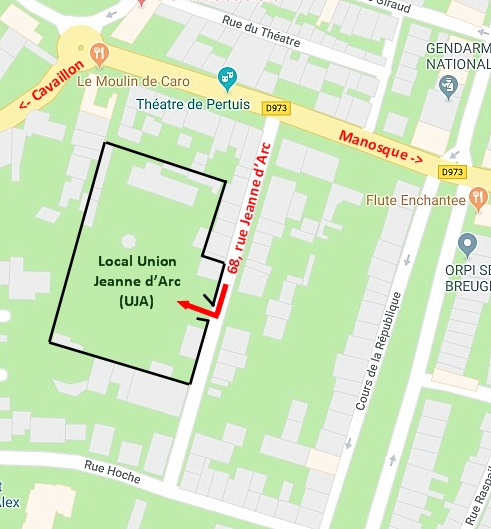 Le Local Jeanne d’Arc est situé au 54, rue Jeanne d’Arc (ex 54, rue des Moulins) à Pertuis.
