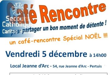 Le Secours Catholique vous accueille à son café-rencontre Tous bienvenus à 14h00 au Local UJA - Pertuis Le Secours Catholique vous accueille à son café-rencontre Tous bienvenus à 14h00 au Local UJA - Pertuis